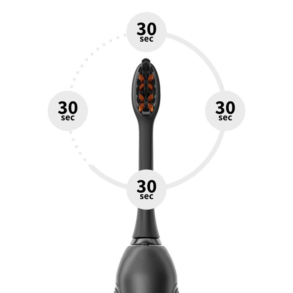 The sonic toothbrush is meticulously designed to assist you in your cleaning routine. With haptic feedback, it notifies you when it’s time to move on to the next quadrant, ensuring a thorough and efficient brushing experience.